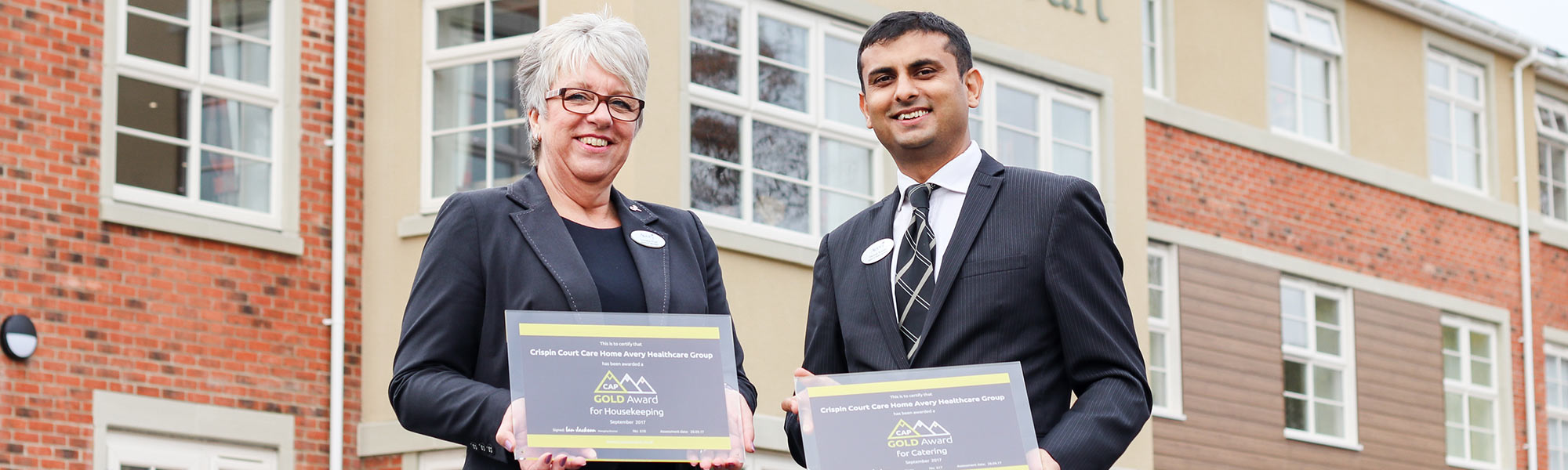In a first for the adult social care sector, Avery Healthcare in collaboration with the CAP Awards (Continuous Advancement Programme), is delighted to announce that Crispin Court Care Home in Stafford has won a double Gold Award for both Housekeeping and Catering.